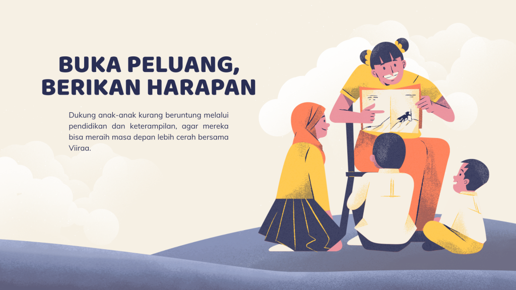 Pendidikan adalah kunci untuk mengubah nasib dan membuka peluang baru. Program ini tidak hanya fokus pada akademik, tetapi juga pada pengembangan karakter, kreativitas, dan rasa percaya diri anak-anak. Viiraa bekerja sama dengan sekolah, guru, dan relawan untuk memastikan anak-anak menerima pendidikan yang menyeluruh dan berkelanjutan.